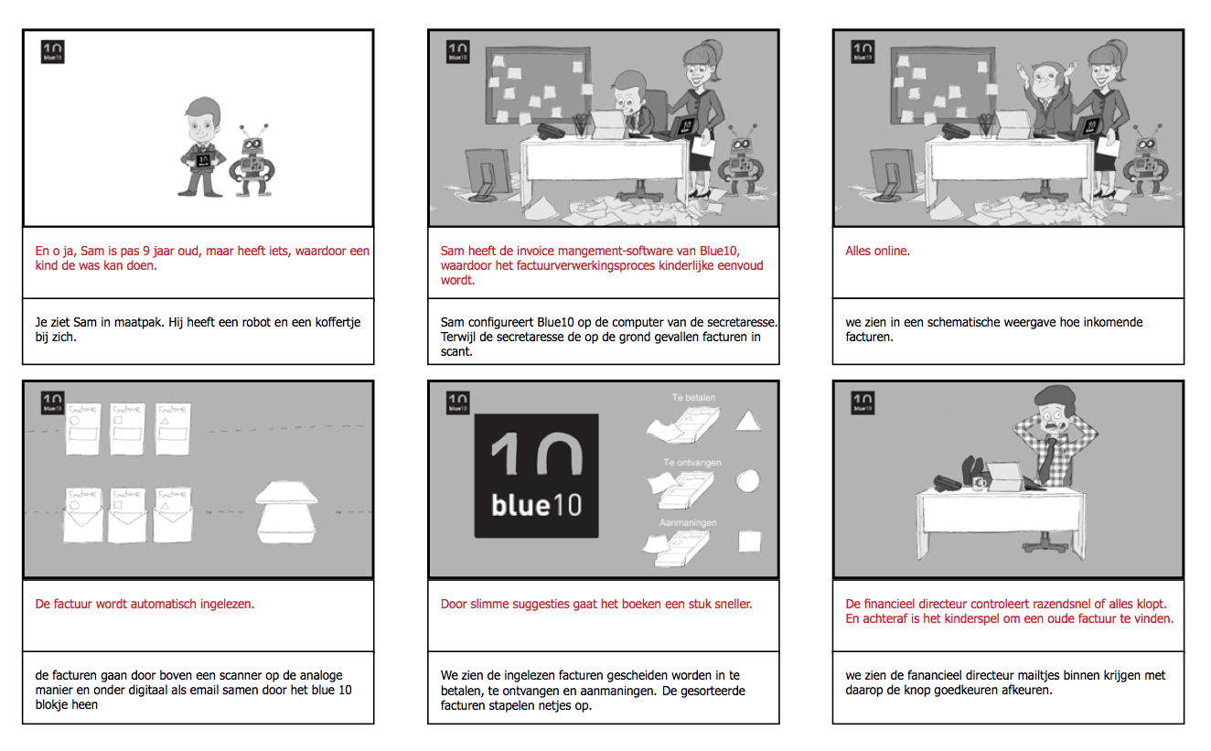 De insteek was: “Kind kan de was doen” Dit is volledig doorgetrokken in de rest van de bijbehorende marketing campagne. De animatie laat aan de hand van een tekenfilm zien hoe kinderlijk eenvoudig de software van Blue10 werkt.